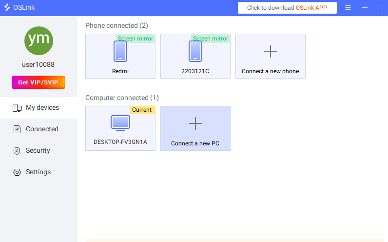 On both the primary phone (the one that needs to run multiple games) and the secondary phone (the one being controlled), install OSLink. Log in to the same account on both phones. On the primary phone, click on the controlled device and initiate a connection. After the controlled device confirms authorization, a stable connection will be established within seconds. Then, on the primary phone, find the game you want to run multiple times and click "Start." The controlled device will then run the game synchronously and repeat online operations. Download from the official website (https://www.oslink.io/).