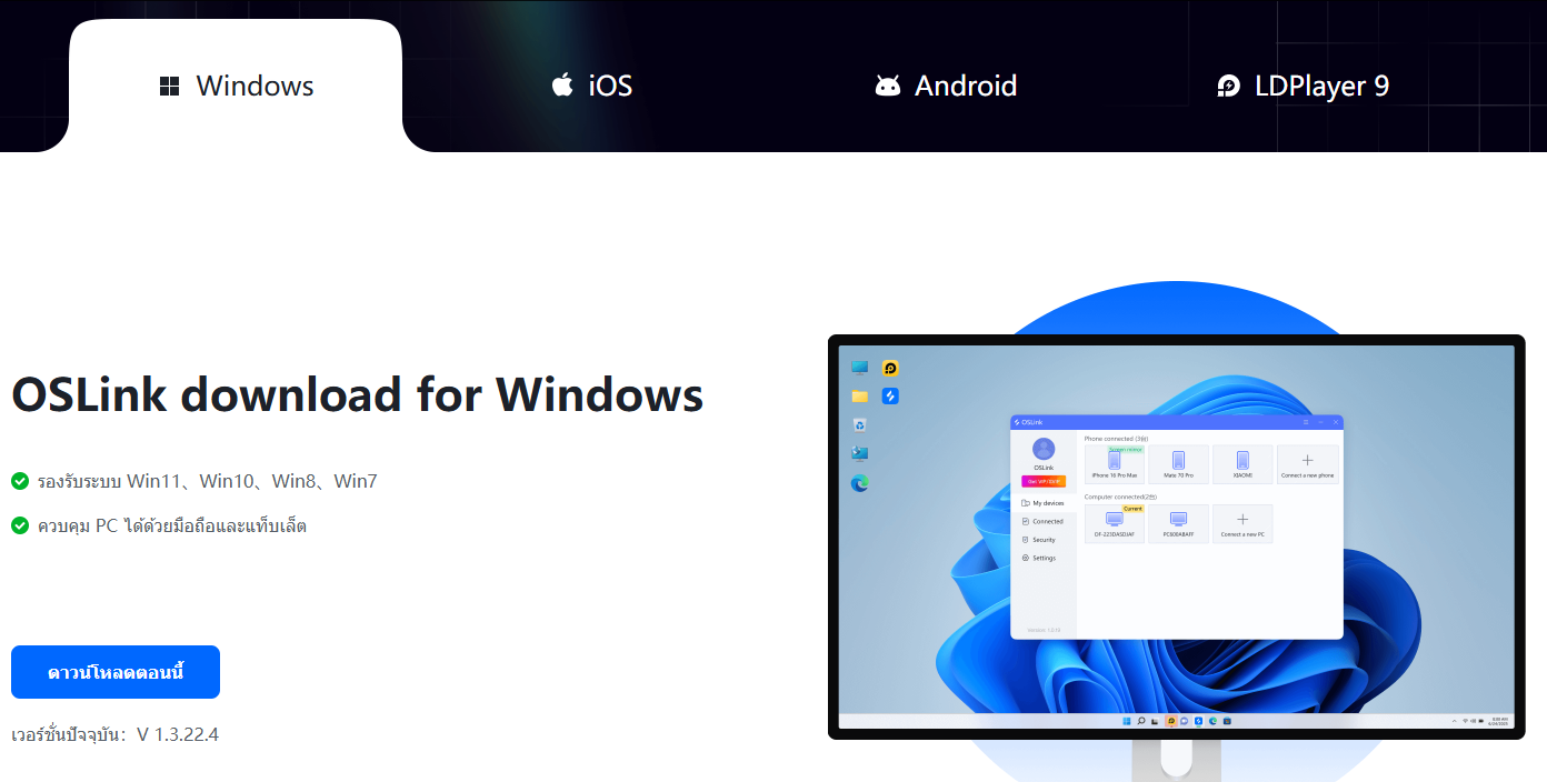1.ขั้นแรก ไปที่เว็บไซต์อย่างเป็นทางการเพื่อดาวน์โหลดโปรแกรมไคลเอ็นต์ Oslink (https://www.oslink.io/th)