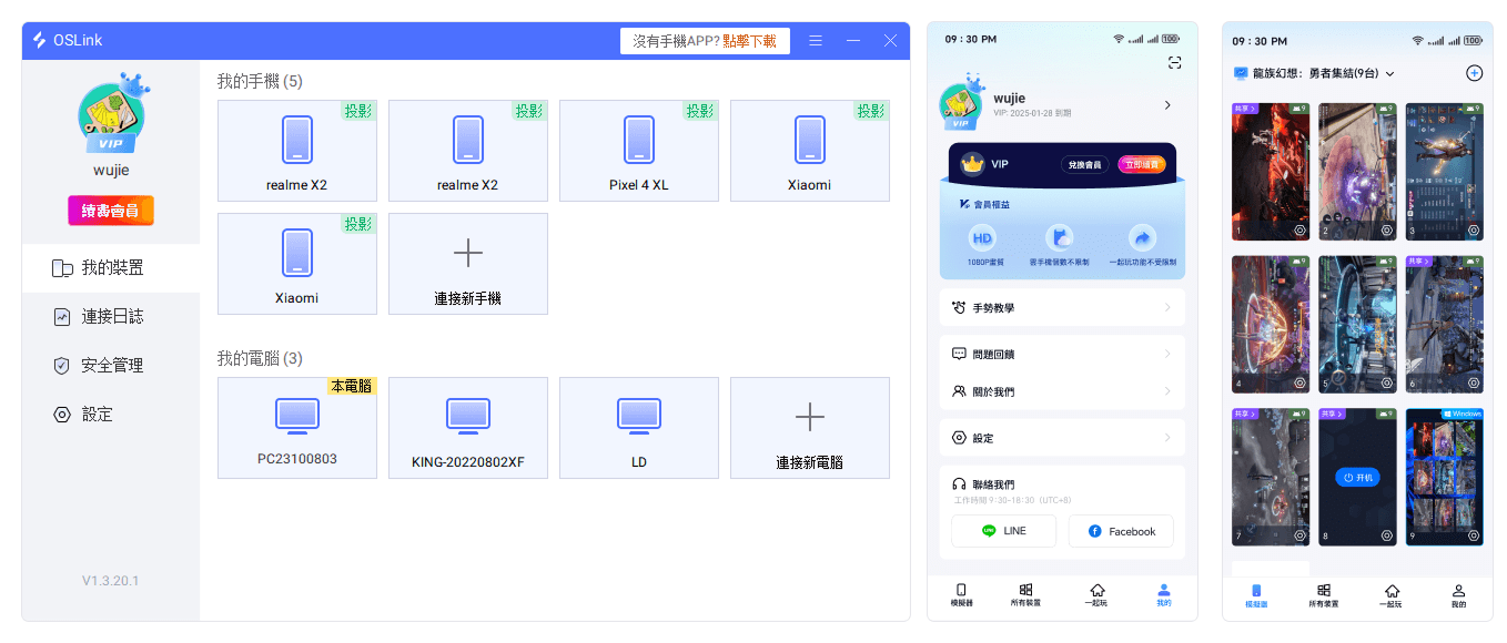 下載 OSLink App 並在手機上安裝,完成帳號登入與綁定,確保手機與電腦能夠同步連線。