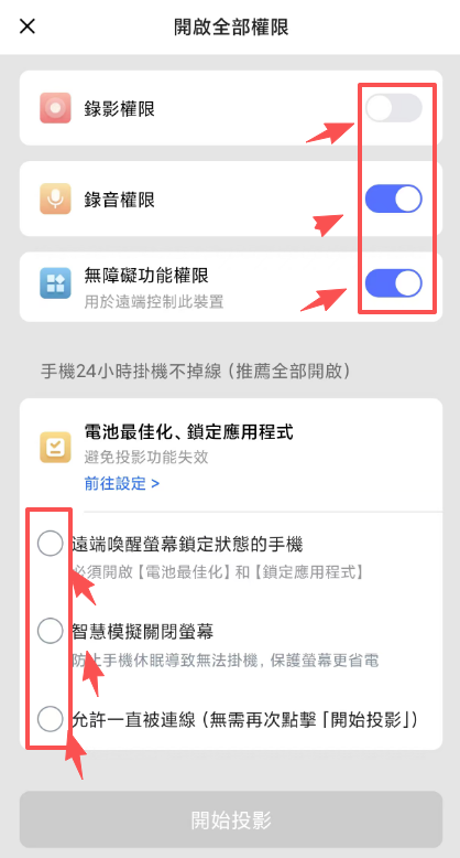 3.點選所有裝置-我的手機,然後根據提示授予權限即可(電池顯示權限推薦全部開啟能有效避免掉線)