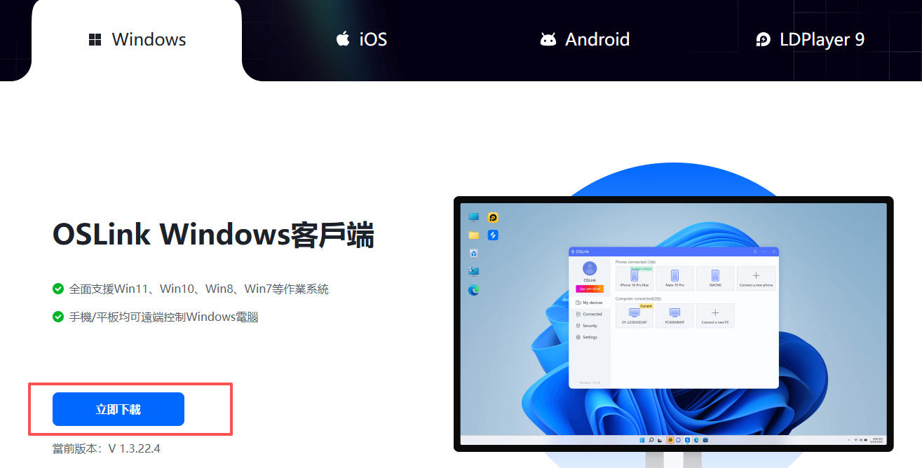 1.先前往官網下載oslink客戶端(https://www.oslink.io/tw)