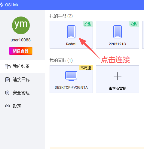 3.在PC端點擊我的手機下面顯示的裝置(如果登入了同一個帳號就會自動顯示,沒有看到手機就是沒有登入同一個帳號)進行連接 然後根據提示開啟遠端所需的權限就可以連接到手機啦