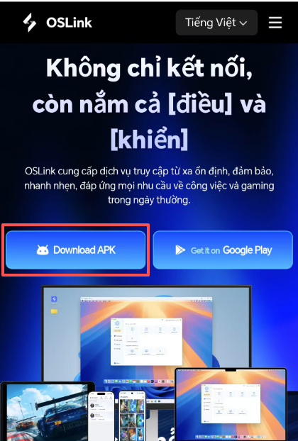 1.Trước tiên, hãy truy cập trang web chính thức để tải xuống ứng dụng OSLink (Trang web chính thức: https://www.oslink.io/vn/)